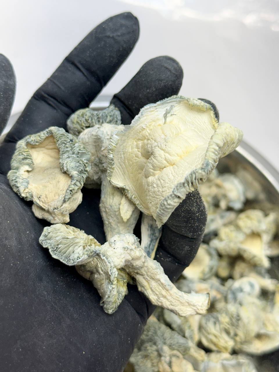 The Albino Melmac mushroom is a highly potent, true albino variety of the psychedelic mushroom species Psilocybe cubensis. It is a unique genetic isolation known for producing large, pure white fruit bodies and providing a distinctly energetic and social experience